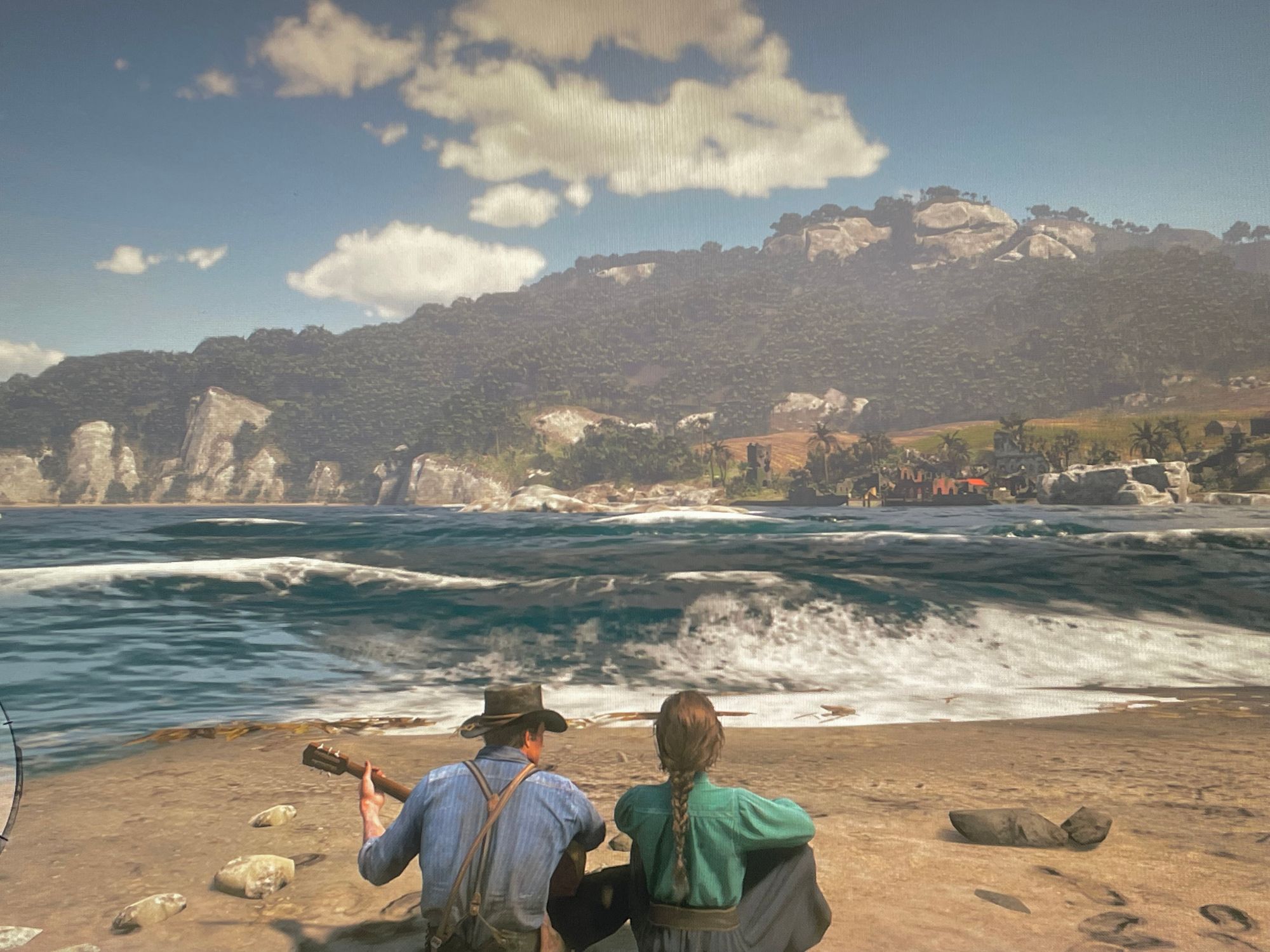 Mary was Arthur's ex-finance. The two were in a romantic relationship and deeply in love, but it ultimately fell through due to Arthur's life as an outlaw, leading to prevalent disapproval from her family as a result. 在游戏里他俩兜兜转转还是没能在一起,因为最后Arthur死了。I've been rooting for Arthur to have a second chance with Mary during gameplay, but it never came true. 在游戏尾声其实是不可能有这张他俩在海边dating的screenshot的,只是我用mod - in gaming, modification (mod) refers to the process of editing or changing the structure, syntax or code of a game, 让他俩在游戏尾声可以“假装”在一起(本来这个时候Arthur已经没了)。算是老玩家的一个心理安慰吧。RIP. 看起来做这些挺meaningless的,好像闲的没事儿做,但 somehow it means something when you start to enjoy the world this game offers. I know technically, they're essentially just a bunch of code snippets, but they're more than that when you get to know the stories behind.